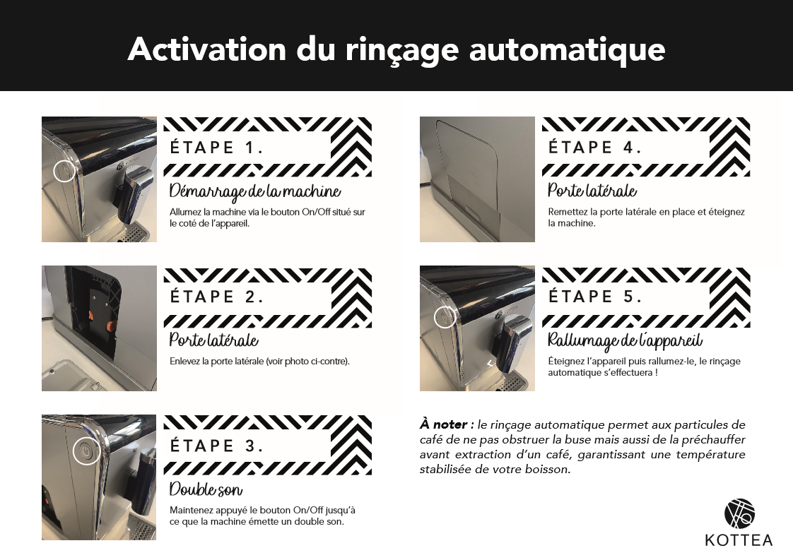 Vous disposez d'une machine Kottea Espressima et vous constatez qu'elle n'effectue plus le cycle de rinçage automatique.